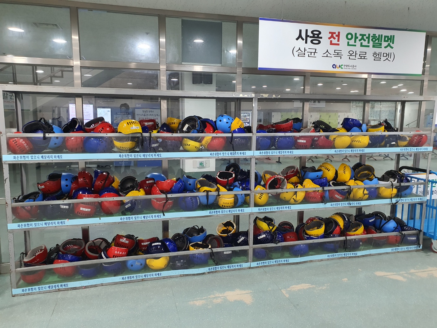 스케이트화를 대여하고, 안전 헬멧을 착용 후