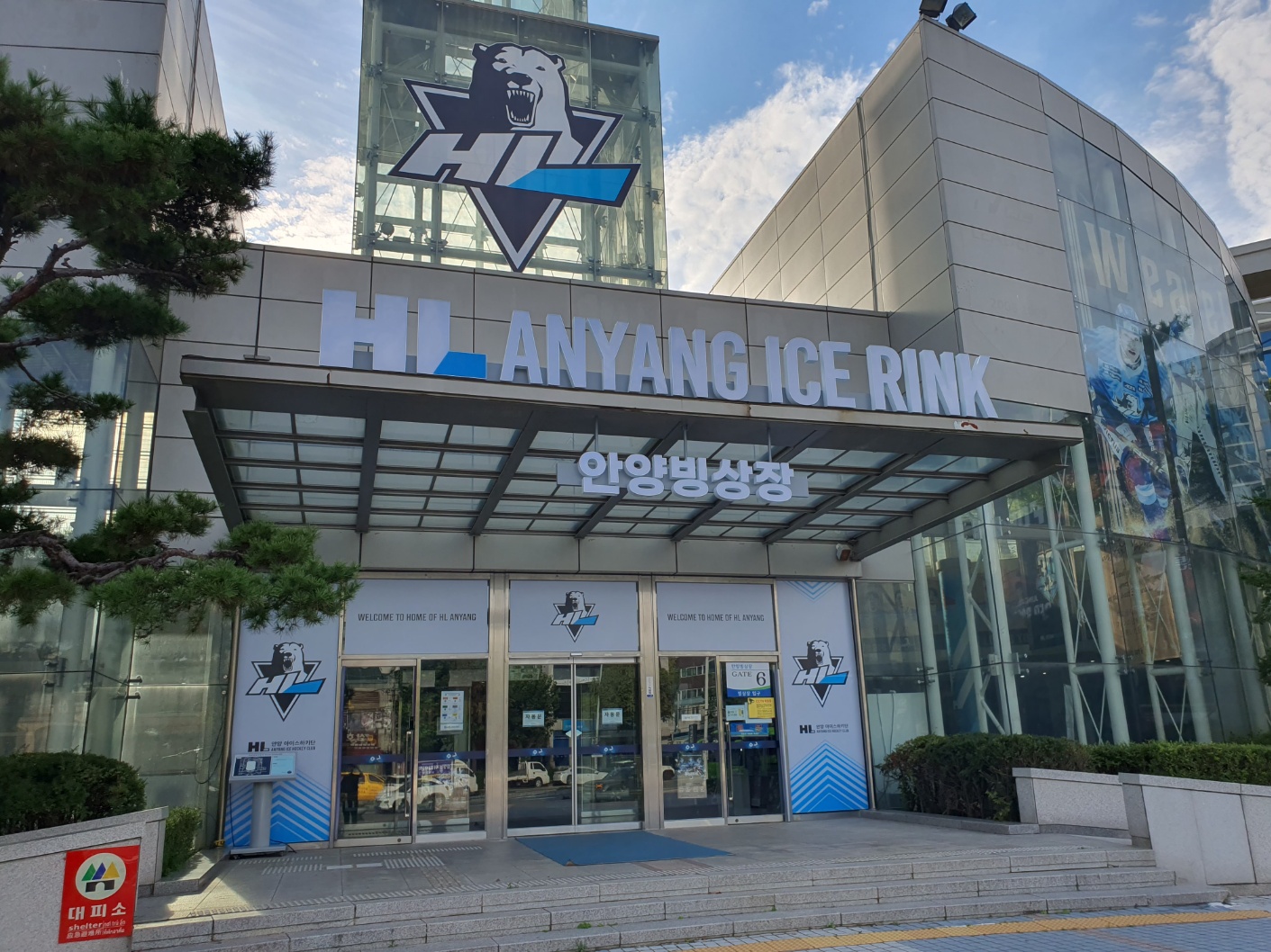 사진과 같이 안양 빙상장 (ice Rink) 간판을 확인할 수 있습니다.