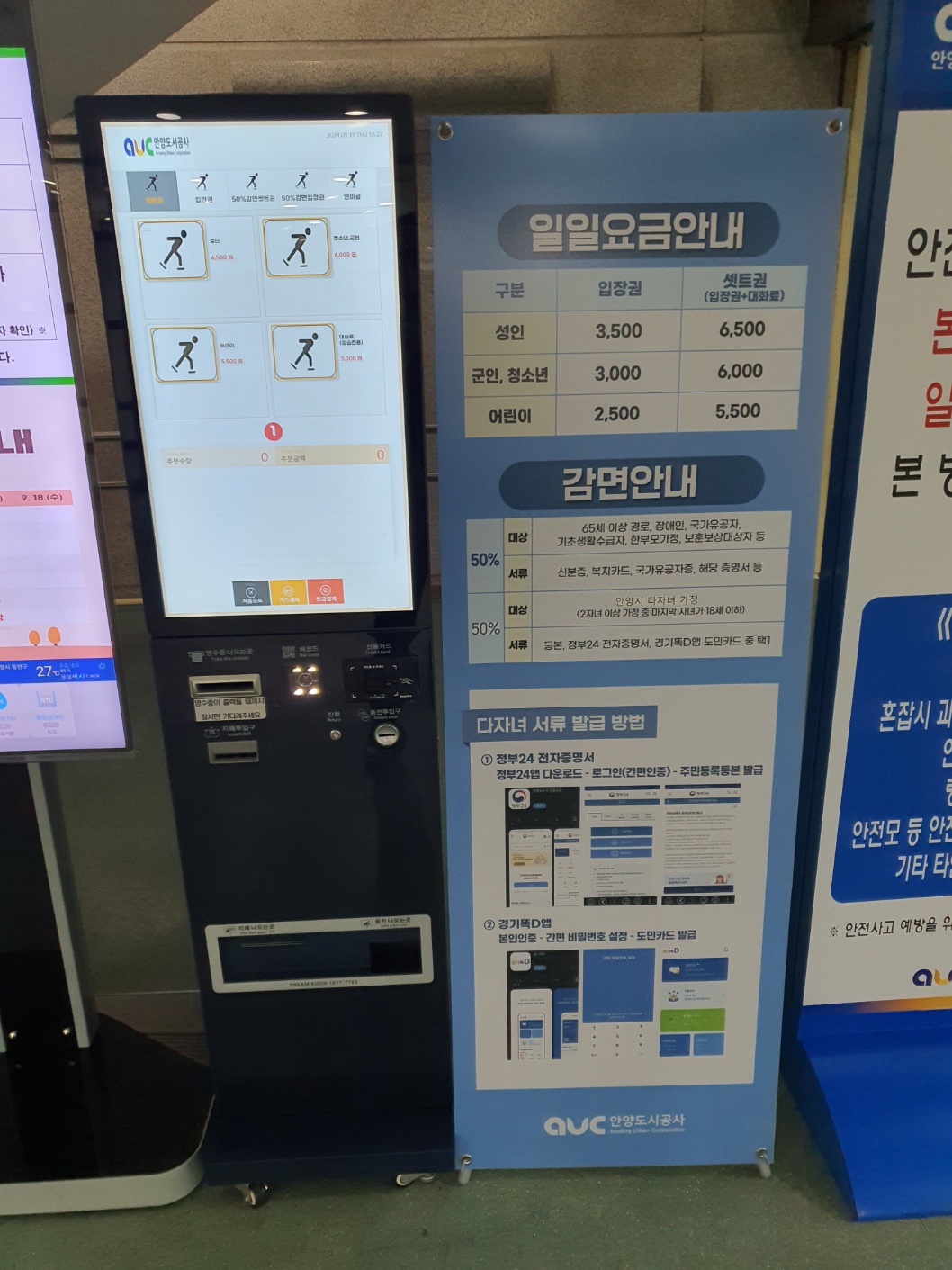 발권기 뒤에 위치한 스케이트 대여소에 방문하여